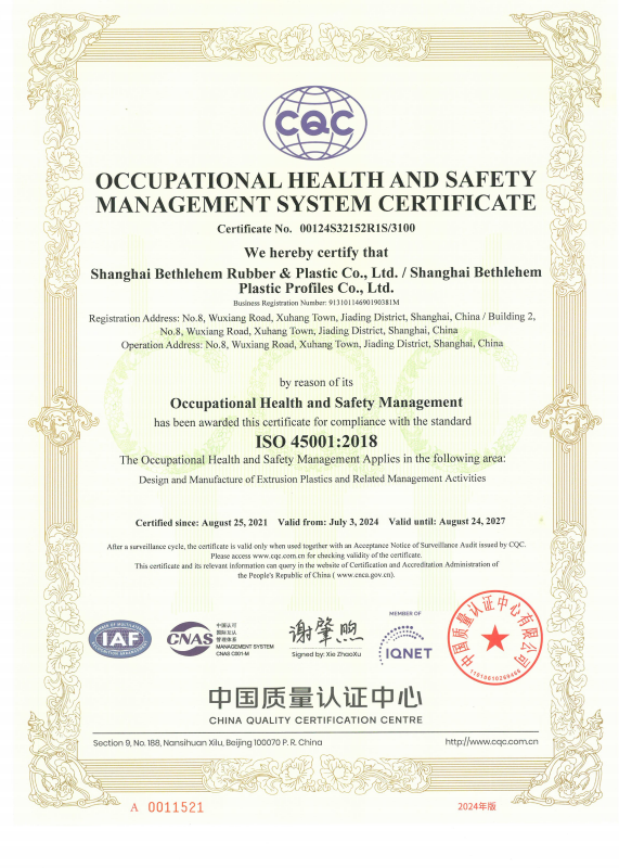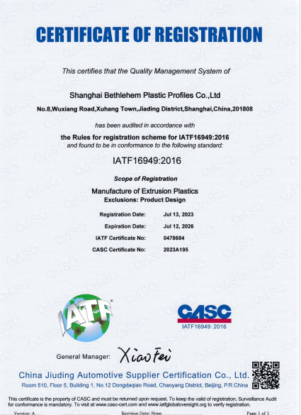 Shanghai Canaan Plastic Co., Ltd. was established in 1997. We are a production-oriented enterprise integrating the research of profile extrusion technology and polymer theology, the design of profile extrusion plastic (profile) processes, the synthesis, modification, granulation and color matching of polymers, profile extrusion molds, and product manufacturing. The company has passed the ISO9001:2015 quality system certification, ISO14001:2015 environmental management system certification, ISO45001:2018 occupational health and safety management system certification, and IATF16949:2016 quality system certification.
